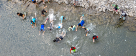 川底まで透けて見える清流・那賀川に、色々な宝ものが隠されています。スタートの合図を待って、水に飛び込もう!ちびっ子たちのための川イベントです。