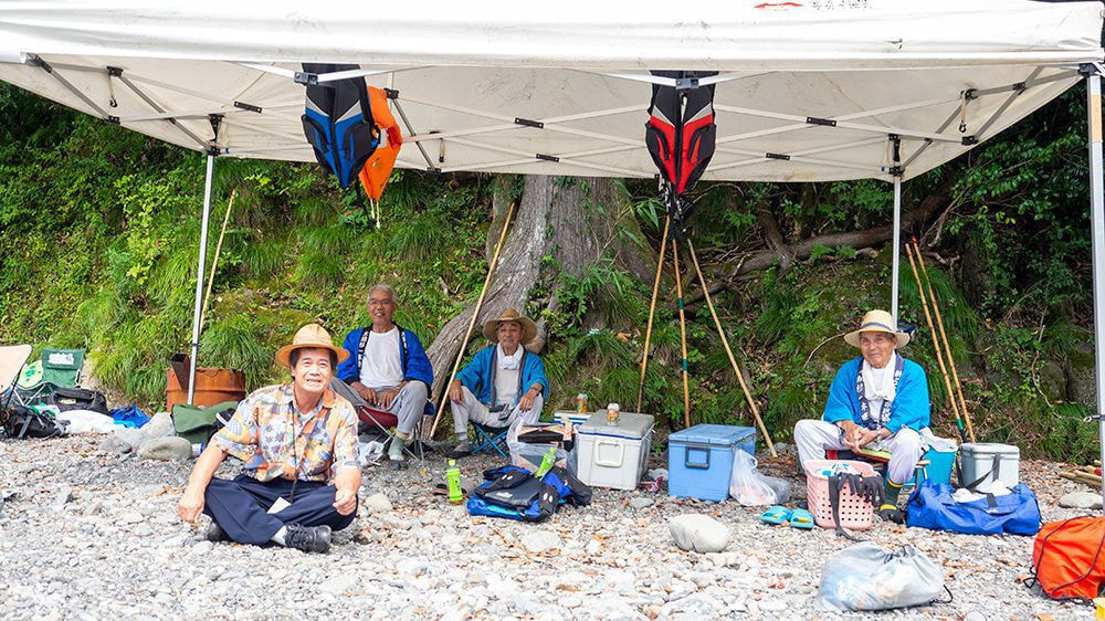 ▲那賀川の清流のほとりで名人が待っとるよ。