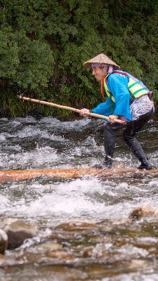 木材を運ぶための道路やトラックがなかった頃。清流・那賀川の流れに乗せることで川下に送られました。そこで発達したのが、山から切り出された、ナカ(那賀町木頭地区)の特産ブランド「木頭杉」を、岩にぶつからないよう大切に運ぶ「一本乗り」の技。丸太の上に立って流れに乗る難しい技ですが、木頭杉の丸太を自在に乗りこなす一本乗り名人からコツを学べば大会本番にも自信をもって臨めるはず。名人が教える講習会にぜひ参加してください。講習会では、名人手づくりジビエ鍋のおもてなしも。